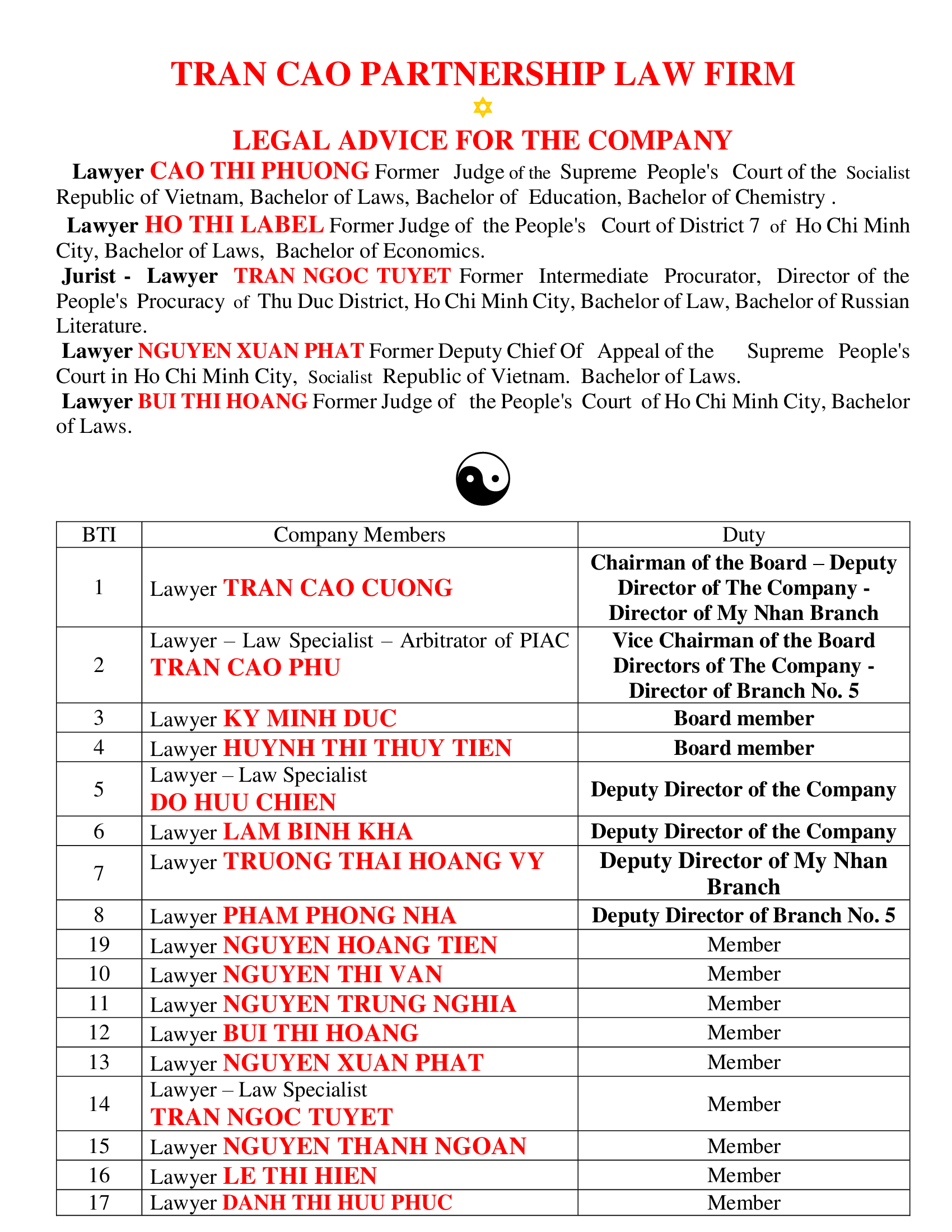 ORGANIZATION CHART OF TRAN CAO LAW PARTNERSHIP COMPANY